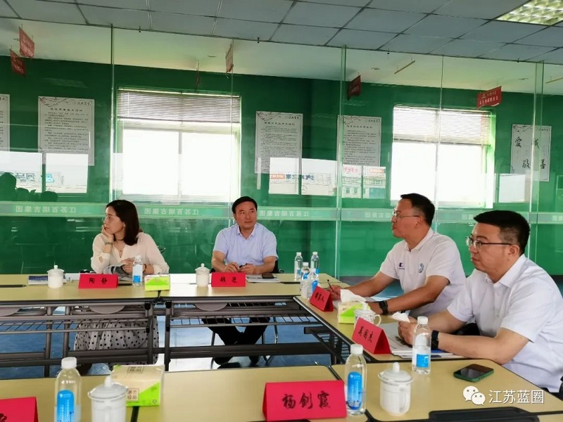 2022年6月9日,鎮江市人大常委會黨組副書記、副主任、一級巡視員胡宗元一行蒞臨藍圈新材參觀指導,董事長王興文、總裁助理呂斌、副總裁魏玉萍共同接待。